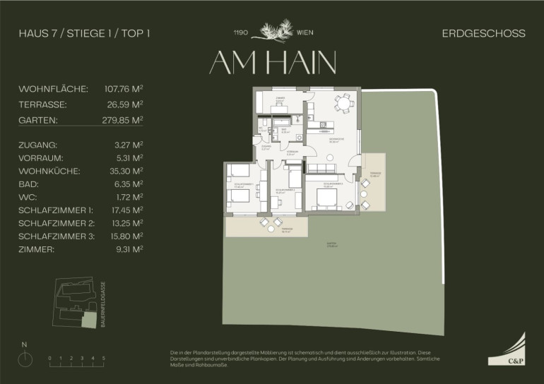 Die Wohnungen in der Bauernfeldgasse 7-9 bieten eine exzellente Ausstattung, die höchsten Ansprüchen gerecht wird. Hochwertige Parkettböden, Fußbodenheizung und moderne Bäder mit edlen Armaturen sorgen für ein luxuriöses Wohngefühl. Großzügige Wohnbereiche mit offenen Grundrissen schaffen ein helles, freundliches Ambiente.