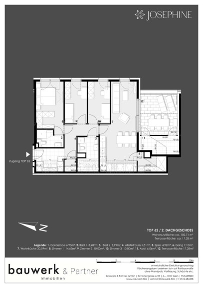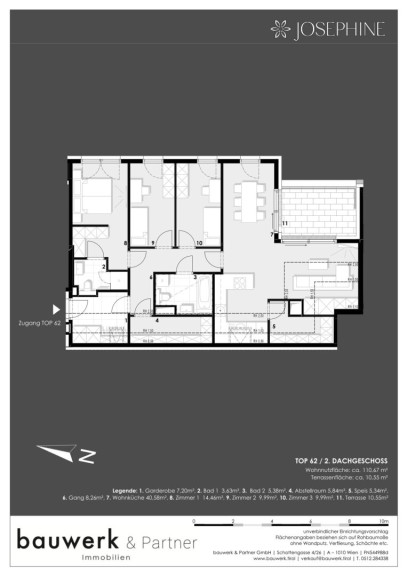 JOSEPHINE verkörpert den vollen Lebensgenuss und würdigt die Schönheit des Moments.In der Stoffellagasse 7 im 2. Bezirk, direkt am Wiener Prater, wird das Wohnprojekt JOSEPHINE vom renommierten Tiroler Bauträger bauwerk realisiert. Ein besonderes Merkmal dieses Projektes ist der unvergleichliche Blick auf den Prater und das Wiener Riesenrad. Insgesamt werden 60 hochwertige Wohnungen über 7 Etagen mit einzigartigem Grünblick errichtet. Das Angebot reicht von effizienten 2 Zimmerwohnungen bis zur luxuriösen Dachgeschosswohnung. Alle Wohneinheiten verfügen über private Freiflächen. Zudem stehen den Bewohnern ca. 30 Tiefgaragenstellplätze und Kellerabteile zur Verfügung. Das Projekt wurde zudem mit der klimaaktiv Bronze Zertifizierung ausgezeichnet.