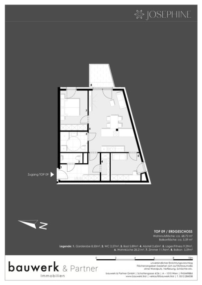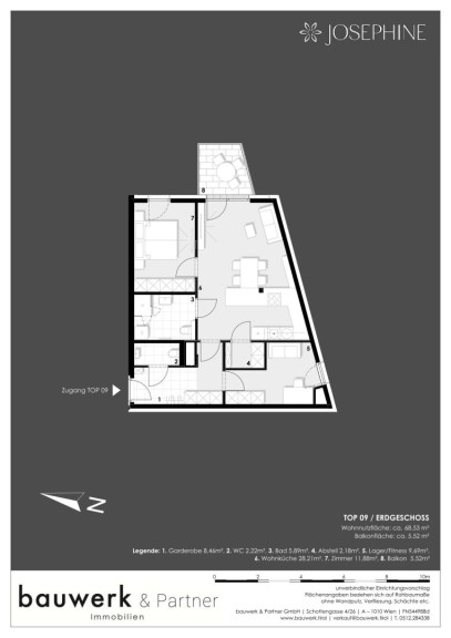 JOSEPHINE verkörpert den vollen Lebensgenuss und würdigt die Schönheit des Moments.In der Stoffellagasse 7 im 2. Bezirk, direkt am Wiener Prater, wird das Wohnprojekt JOSEPHINE vom renommierten Tiroler Bauträger bauwerk realisiert. Ein besonderes Merkmal dieses Projektes ist der unvergleichliche Blick auf den Prater und das Wiener Riesenrad. Insgesamt werden 60 hochwertige Wohnungen über 7 Etagen mit einzigartigem Grünblick errichtet. Das Angebot reicht von effizienten 2 Zimmerwohnungen bis zur luxuriösen Dachgeschosswohnung. Alle Wohneinheiten verfügen über private Freiflächen. Zudem stehen den Bewohnern ca. 30 Tiefgaragenstellplätze und Kellerabteile zur Verfügung. Das Projekt wurde zudem mit der klimaaktiv Bronze Zertifizierung ausgezeichnet.