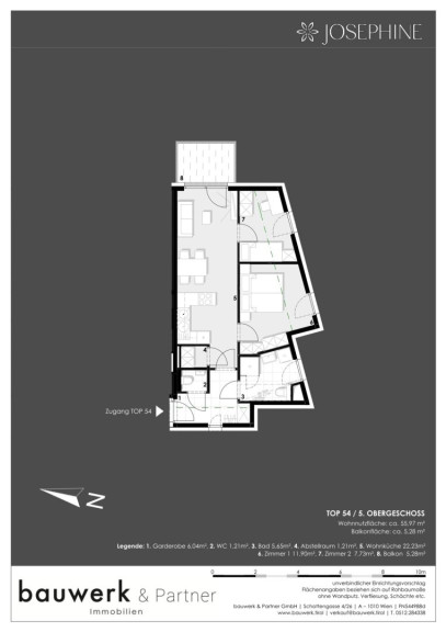 JOSEPHINE verkörpert den vollen Lebensgenuss und würdigt die Schönheit des Moments.In der Stoffellagasse 7 im 2. Bezirk, direkt am Wiener Prater, wird das Wohnprojekt JOSEPHINE vom renommierten Tiroler Bauträger bauwerk realisiert. Ein besonderes Merkmal dieses Projektes ist der unvergleichliche Blick auf den Prater und das Wiener Riesenrad. Insgesamt werden 60 hochwertige Wohnungen über 7 Etagen mit einzigartigem Grünblick errichtet. Das Angebot reicht von effizienten 2 Zimmerwohnungen bis zur luxuriösen Dachgeschosswohnung. Alle Wohneinheiten verfügen über private Freiflächen. Zudem stehen den Bewohnern ca. 30 Tiefgaragenstellplätze und Kellerabteile zur Verfügung. Das Projekt wurde zudem mit der klimaaktiv Bronze Zertifizierung ausgezeichnet.