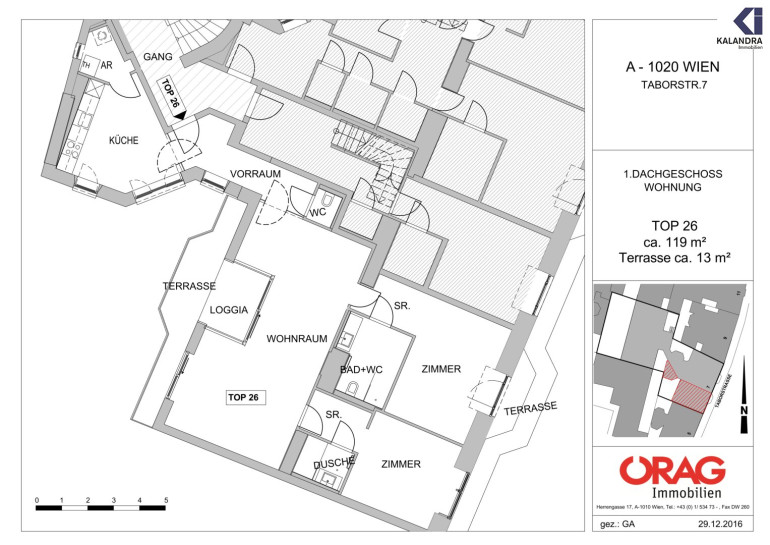 Diese im modern ausgebauten Dachgeschoß (BJ 2012) eines klassischen Jahrhundertwendehauses gelegene 3-Zimmer Wohnung bietet folgende