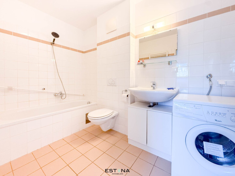 Fliesen, Parkett, Einbauküche, Nordbalkon, Badewanne