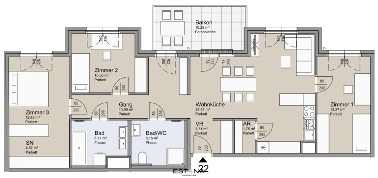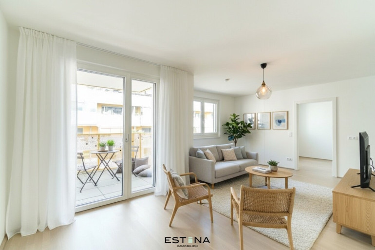 Die angeführten Fotos sind Beispielbilder einer bereits fertiggestellten Wohnung oder KI Visualisierung im Projekt.
