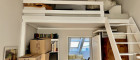 - eine Wendeltreppe führt zu einer Galerie, die als Arbeitsplatz genutzt wird