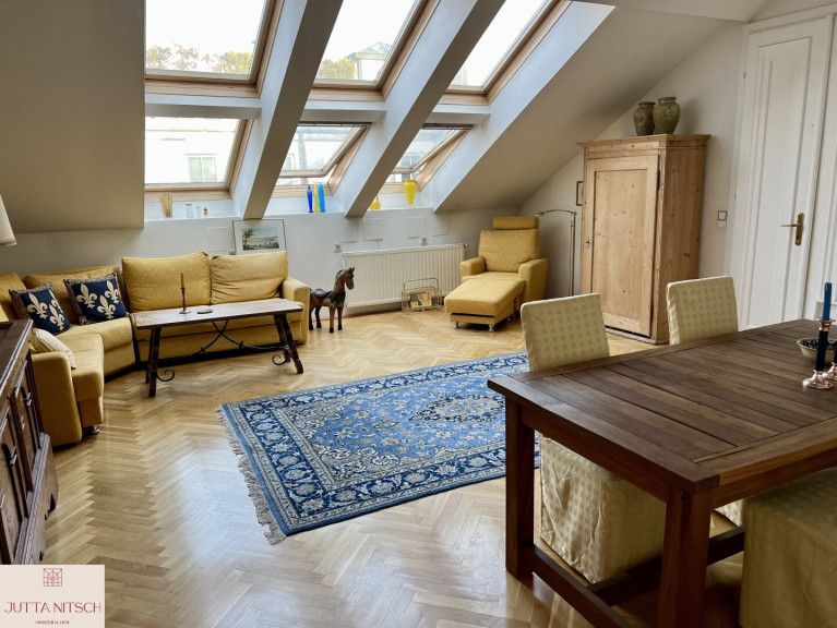 In einem charmanten Jugendstilhaus wird im 5. Liftstock eine wunderschöne, ruhig gelegene Dachterrassenwohnung mit einem Garagenplatz verkauft. Die Architektenwohnung wurde im Jahre 1995 auf das Wohnhaus neu aufgebaut und bietet einen durchdachten Schnitt.