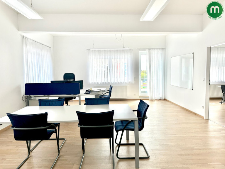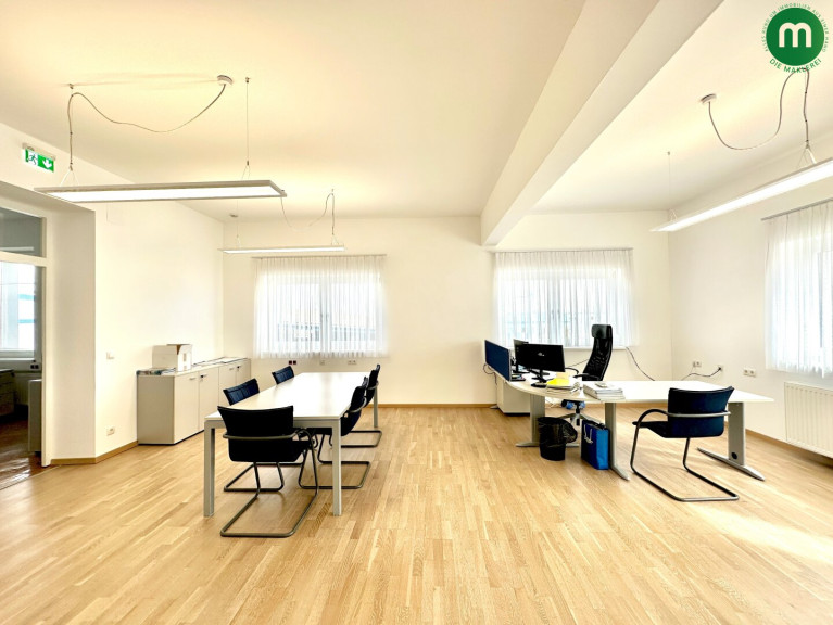 • ein Obergeschoß mit 5 Bürozimmern sowie einer Küche mit Essplatz und Toilette