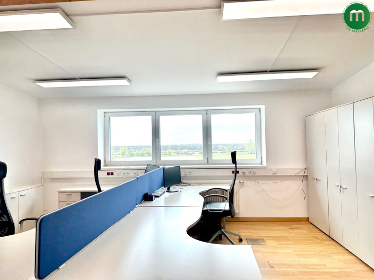 Das Objekt gliedert sich in ein Bürogebäude mit ca. 390 m² sowie eine überdachte Lagerfläche mit 1.000 m². Die zur Verfügung stehende Fläche teilt sich wie folgt auf: