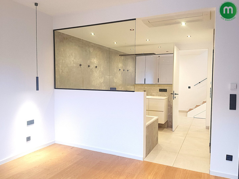 Die Immobilie wurde 2019 nach den Vorstellungen der derzeitigen Eigentümer hergerichtet und ist mit edlen Materialien ausgestattet. In der Wohnung sind Echtholzparkett (Eiche) und italienisches Feinsteinzeug als Bodenbeläge verlegt. Hochwertige Armaturen, Verglasungen, Einbauten vom Tischler, Küche vom Tischler inkl. Geräten von Miele, Liebherr und Siemens.