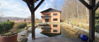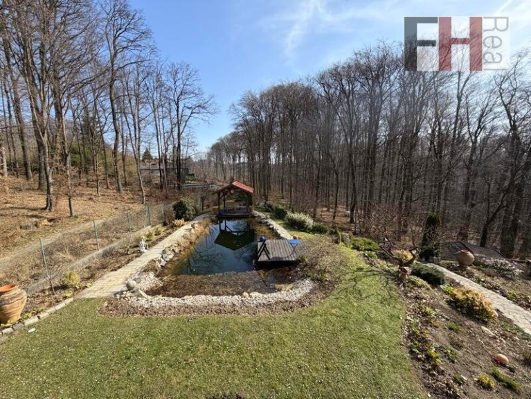 Die idyllischen Außenanlagen sind perfekt gepflegt und liebevoll bepflanzt. Vom Gartentor aus erreicht man über einen breiten, mit schönen Steinen ausgestatteten Stiegenaufgang den Garten, das herrliche Schwimmbiotop und den Zugang zum Haus. Ein Natursteinweg führt zu der an der östlichen Seite des Teiches errichteten großen überdachten Terrasse aus Holz, von wo aus man den Sonnenuntergang genießen kann.