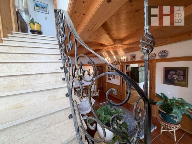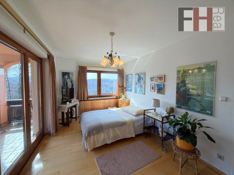 Die obere Etage bietet fast 98m² und verfügt über insgesamt 5 Zimmer, die ebenfalls zentral vom Vorraum aus begehbar sind. Zwei sehr geräumige Schlafzimmer, wobei eines davon Zugang auf die Loggia bietet, sind südöstlich ausgerichtet und bieten einen herrlichen Ausblick in die Ferne aber auch in den Garten.
