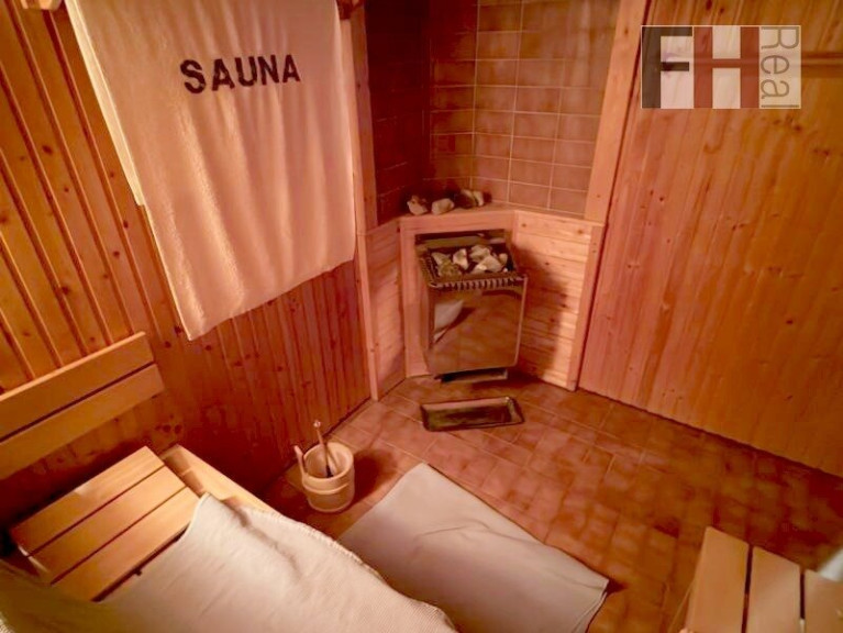 Dielenboden, Fliesen, Zentralheizung, Wohnküche / offene Küche, Bad mit Fenster, Badewanne, Dusche, Sauna, Swimmingpool