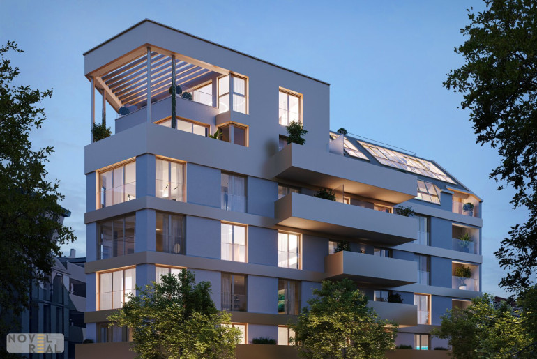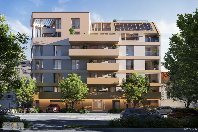 Insgesamt entstehen 29 hochwertige Eigentumswohnungen mit großzügigen Freiflächen von bis zu 80 m², sowie ein kleines Geschäftslokal. Die den oberen Geschoße begeistern mit einem beeindrucken Fernblick.