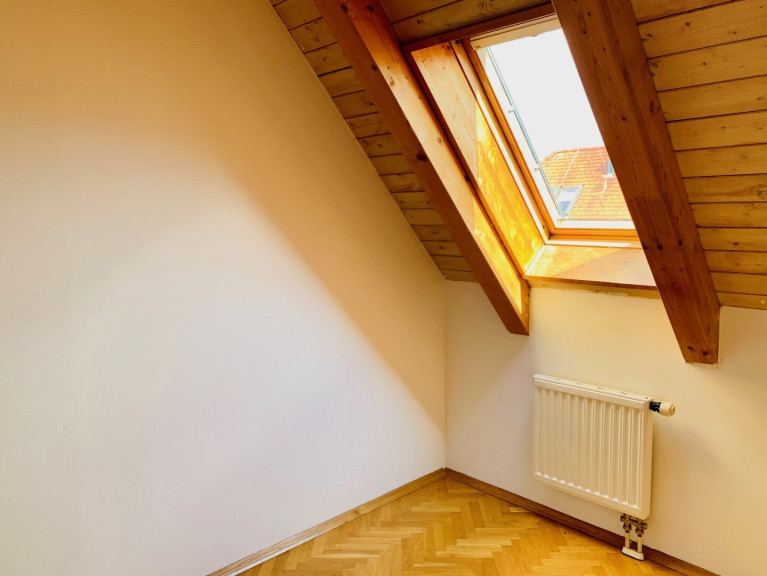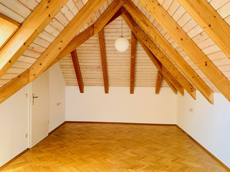 Im Obergeschoss befindet sich ein weiteres Zimmer mit einem kleinen Schrankraum.