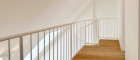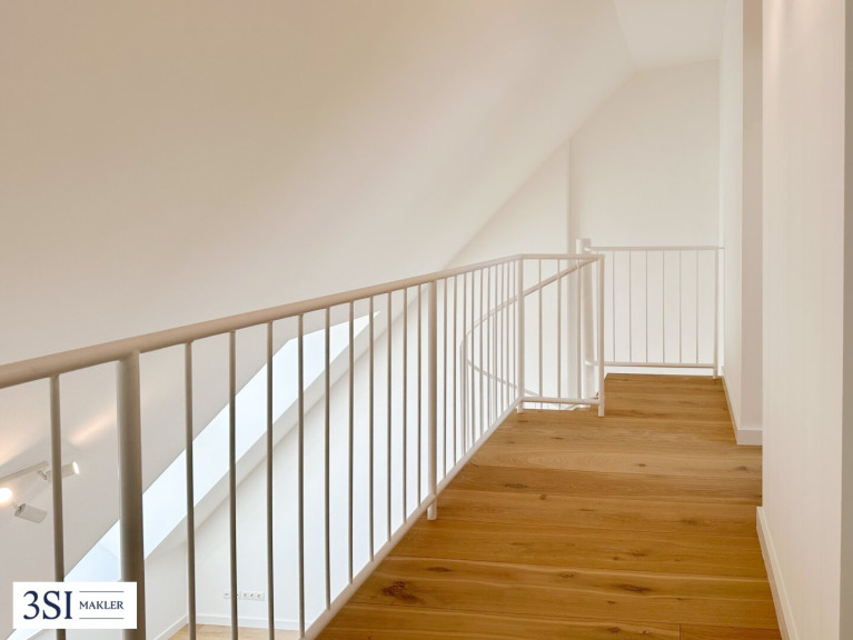 Über eine stilvolle Treppe gelangt man in die obere Ebene, wo sich eine charmante Galerie sowie das ruhig gelegene Schlafzimmer befinden – ein idealer Rückzugsort mit besonderem Flair.