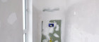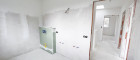 - ein geräumiges Badezimmer mit Vorbereitungen für Dusche und Badewanne und WC