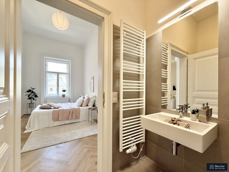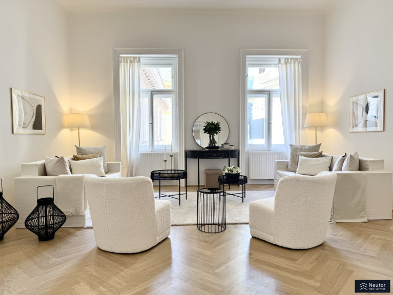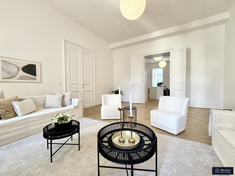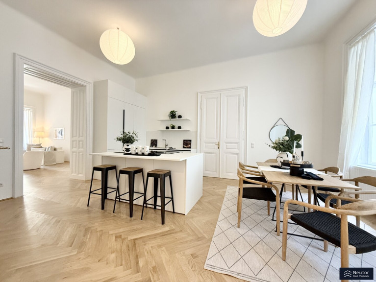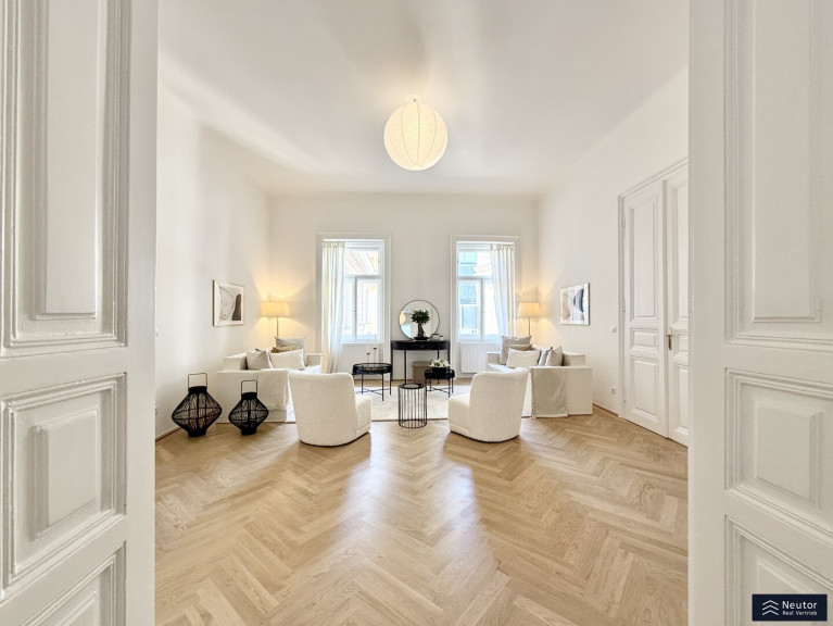 Hochwertiger Fischgrätparkett, lichtdurchflutete Räume und die hohen Decken ziehen sich wie ein roter Faden durch die gesamte Wohnung und verleihen ihr einen klassischen, zugleich zeitlos luxuriösen Charakter. Dieses exklusive Zuhause vereint Eleganz, Komfort und Wiener Lebensart auf perfekte Weise und bietet anspruchsvollen Bewohnern ein urbanes Wohngefühl der Extraklasse.