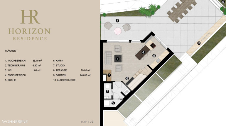 Dieses Projekt bietet den Käufern die Möglichkeit Ihre Räume individuell auszugestalten. Ob Küchendesign, Möblierung der ganzen Wohnung (Tischlerarbeit), Vorbereitung für Lichtgestaltungen, individuelle Bepflanzungen und Gestaltungen sind möglich.