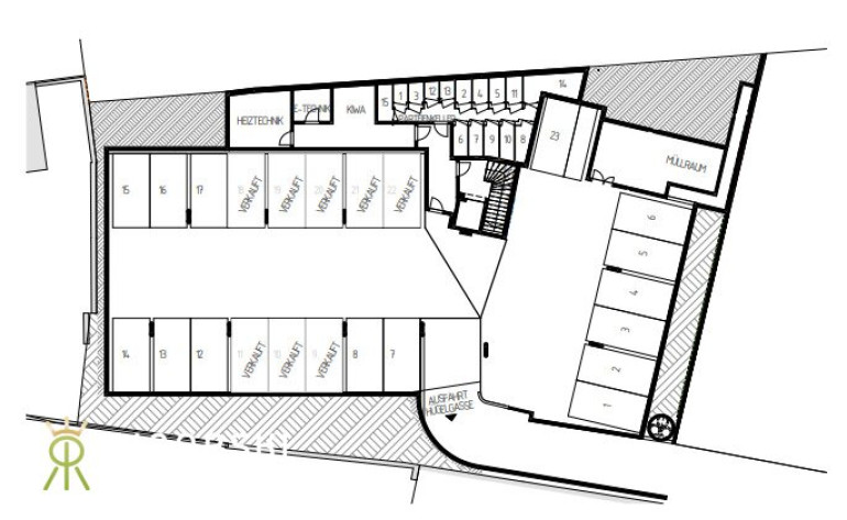 Ein Tiefgaragenplatz mit der Nummer 23 (behindertengerecht) ist in der Miete inkludiert, ein zweiter kann optional angemietet werden.