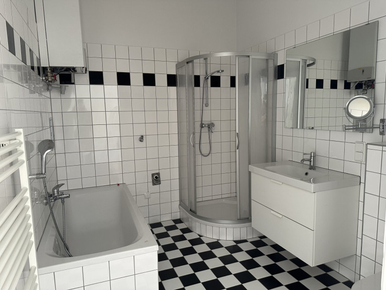 - Badezimmer mit Wanne und Dusche