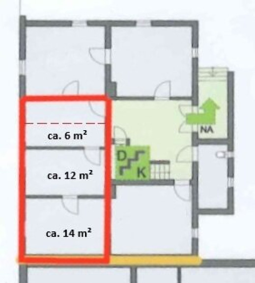 ca. 26 m² im Erdgeschoss, 2 Räume + 6 m² geteilter Vorraum (Kunden-Wartebereich)
