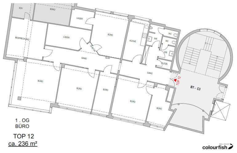 BT C3, Top 12: ca. 236 m² - netto € 9,50/m²/Monat