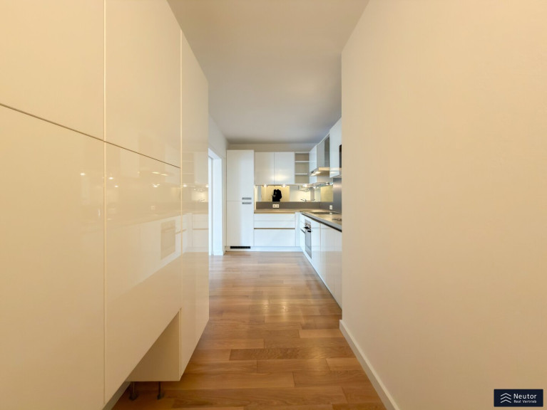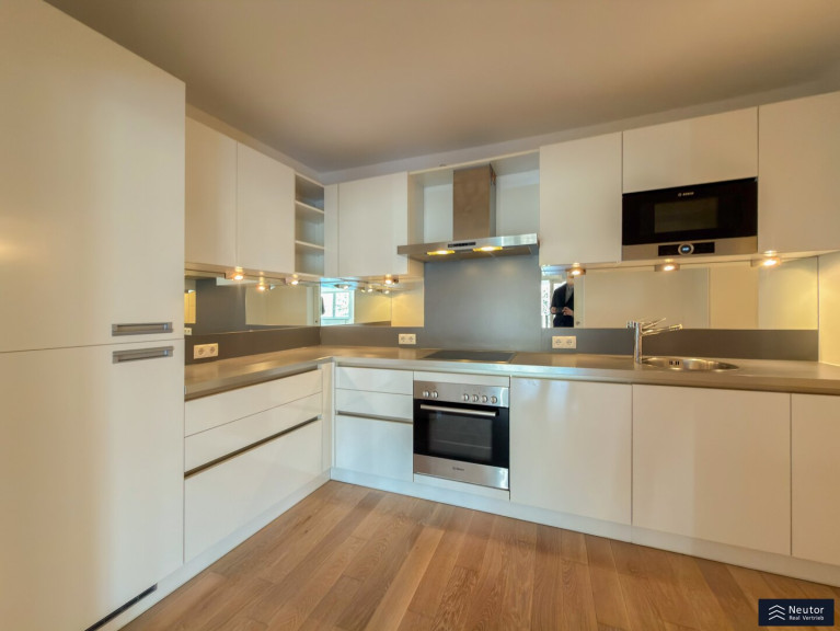 - Exklusive Ausstattung: Vollholzparkett, Einbauküche