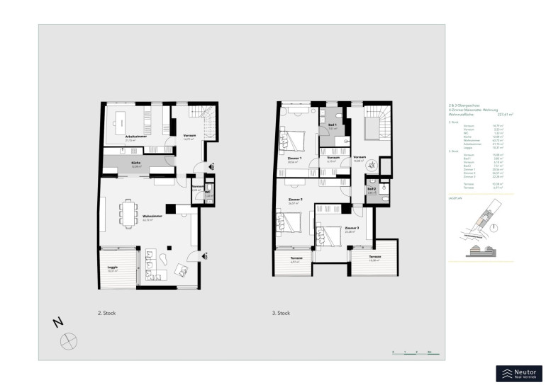 Diese stilvolle 5-Zimmer-Maisonettewohnung im 2. Stock eines modernen Wohnhauses im 19. Bezirk vereint luxuriöses Wohnen mit großzügiger Raumgestaltung und absoluter Privatsphäre. Mit ca. 227,61 m² Wohnfläche, zwei Terrassen und einer Loggia bietet sie ein einzigartiges Wohnambiente. Direkter Liftzugang, lichtdurchflutete Räume und ein nachhaltiges Energiekonzept machen diese Wohnung zu einem exklusiven Rückzugsort.