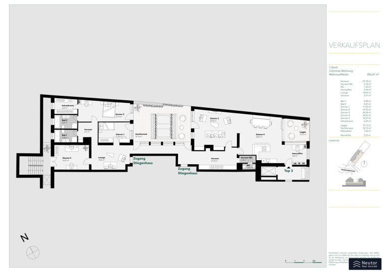 - Wohnfläche: ca. 207,41 m² (inkl. Loggia)