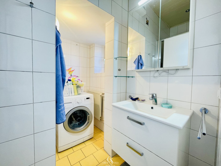 - Kompaktes, aber funktionales Bad: Das Badezimmer mit WC ist zwar kompakt, lässt jedoch keine Wünsche offen. Ein schöner Badezimmer-Spiegelschrank, eine Dusche und separater Platz für die Waschmaschine.