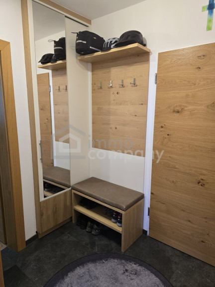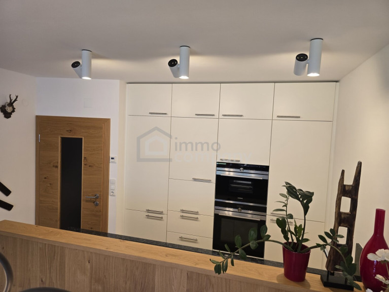 Vom einladenden Vorraum mit maßgefertigter Garderobe gelangen Sie in den offenen Wohn- und Essbereich mit voll ausgestatteter Küche. Die Kombination aus moderner Technik und edlen Materialien – darunter exklusive Voglauer Vollholzmöbel – schafft ein warmes und gleichzeitig elegantes Wohnambiente.