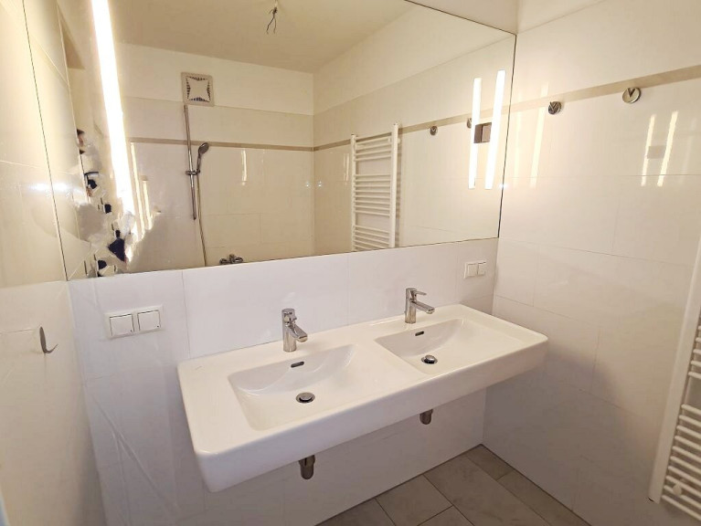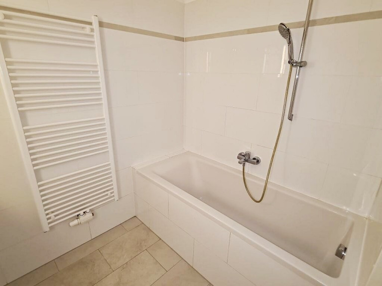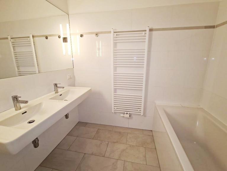 + Badezimmer mit Badewanne, Doppelwaschtisch und Sprossenheizkörper