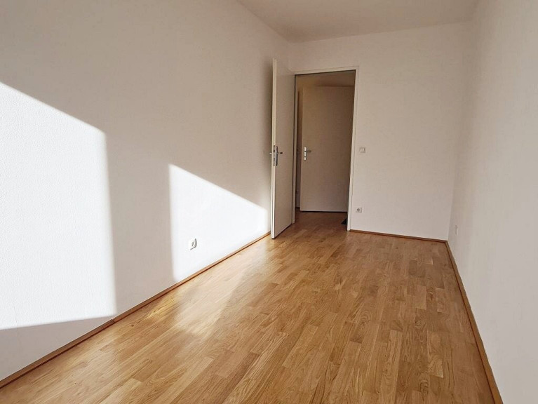 Vorzimmer, Wohn-Esszimmer mit offener Küche, 2 getrennt begehbare Schlafzimmer, Badezimmer, WC, Abstellraum, ca. 7,33 m2 Balkon + Kellerabteil