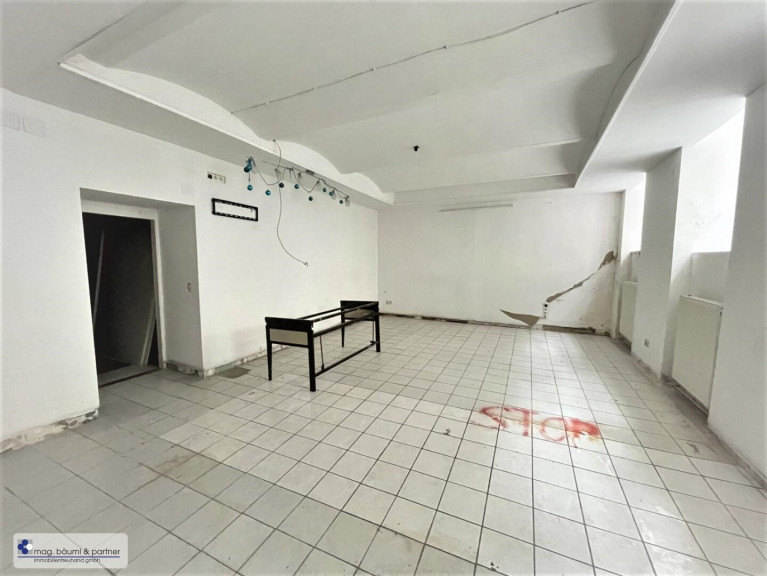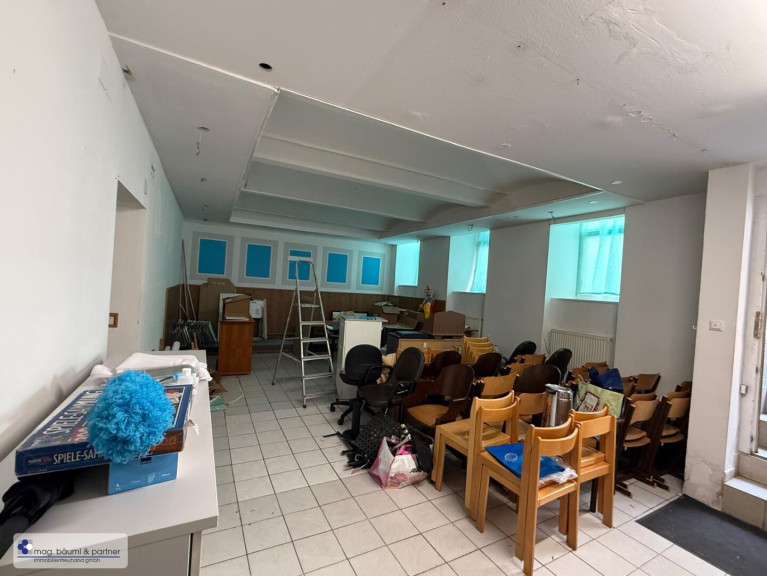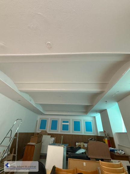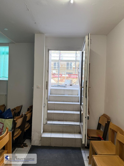 Über einige Stiegen gelangt man in den grossen Raum - der mit Tageslichtfenstern zur Wimbergergasse ausgestattet ist.
