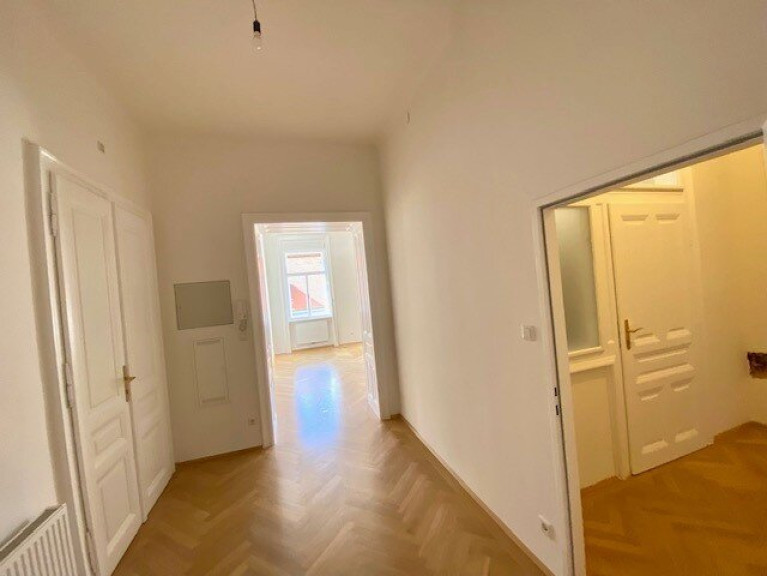 Das Büro befindet sich im 2. Stock und besteht aus: einem großen Vorraum, vier großen Altbauzimmern, eines mit separatem Eingang, zwei kleineren Kabinetten, einer Küche mit Abstellraum, einer Toilette und einem Badezimmer. Das Büro hat 2 Eingänge. Der im Plan eingezeichnete Lift ist nicht in Betrieb. Der Lifteinbau ist innerhalb der nächsten 2 Jahre geplant. Die Heizung ist eine Gasetagenheizung.