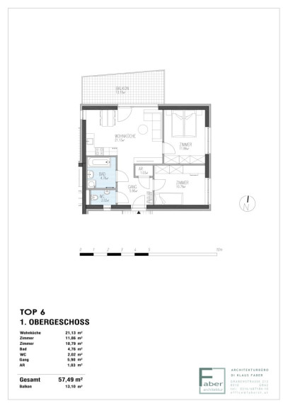 Die Wohnung liegt im 1. Obergeschoss (Lift vorhanden) und verfügt über eine Wohnfläche von ca. 57 m². Die durchdachte Raumaufteilung umfasst: