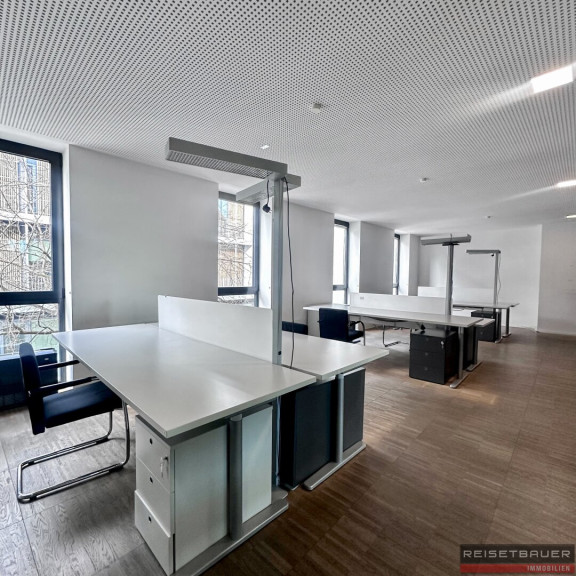 Die großzügigen Glasfronten sorgen für eine helle und freundliche Arbeitsatmosphäre. Auf Wunsch kann das bestehende Mobiliar übernommen werden, was eine ideale Gelegenheit für einen sofortigen und unkomplizierten Einzug bietet.