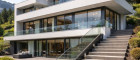 Das Anwesen liegt in erhöhter, ruhiger Lage und bietet einen freien Panoramablick auf die umliegenden Berge und die Landschaft. Großzügige bodentiefe Fenster sowie weitläufige Terrassen sorgen für lichtdurchflutete Räume und schaffen einen harmonischen Übergang zwischen Innen- und Außenbereich.