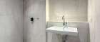 - Badezimmer mit "Walk in" Regendusche oder Badewanne Großformatige Boden- und Wandfliesen