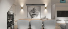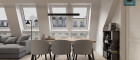 - 1 Wohn-Esszimmer mit Küchenanschluss sowie großen Verglasungen samt Ausgang zur Loggia