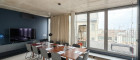 - 1 Großraum inkl. Premium Einbauküche (teilweise Gaggenau Geräte, Kücheninsel mit Kupfer-Oberfläche nach individueller Anfertigung, uvm.) sowie Kamin (von Decke hängend)