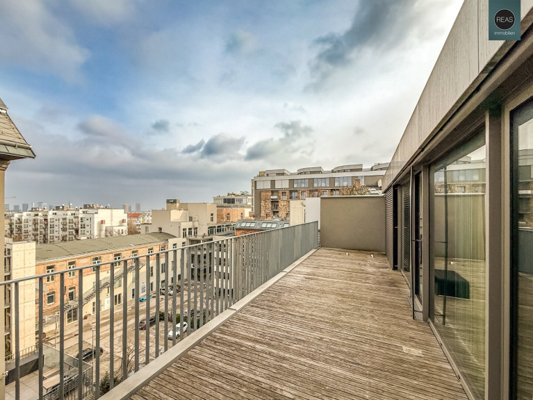 Das Loft verfügt über einen gehobenen Standard inkl. hochwertigen Parkettböden, Fussbodenheizung (Fernwärme), Klimatisierung, großzügige Terrassen mit elektrischen Außenbeschattungen, große 3-Fach verglaste Panorama-Aluminium-Fenster inkl. elektrischer Außenjalousien, hochwertige Glastrennwände mit Schiebetüren, Bewässerungssystem auf den Terrassen, BUS (KNX) System, uvm.