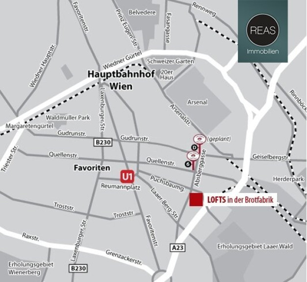 Sämtliche Geschäfte des täglichen Bedarfs in der näheren Umgebung. Diverse Gastronomien direkt in der Brotfabrik Wien.