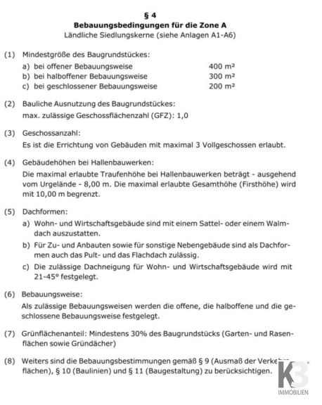 Die GFZ der Zone A in Arnoldstein ist 1, das bedeutet es darf zur Gänze bebaut werden, bei 30% Grünflächenanteil und den erforderlichen Abständen zu den Grundstücksgrenzen.