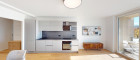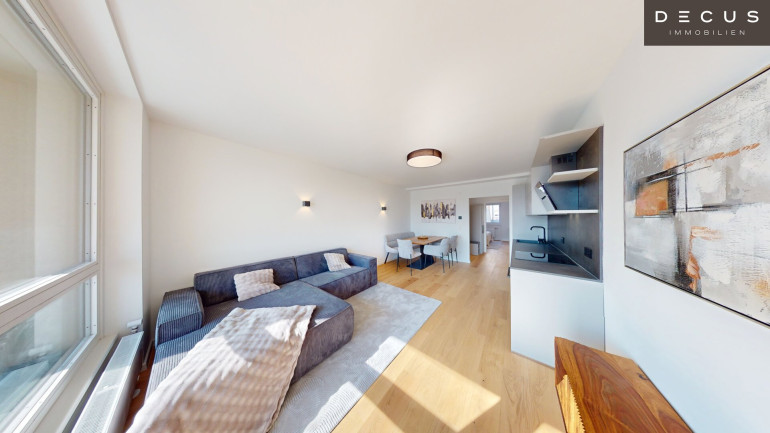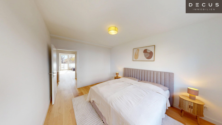 Die drei Schlafzimmer liegen ruhig zum Innenhof und bieten ein angenehmes Wohnklima – während das südseitige Wohnzimmer mit Loggia durch den herrlichen Grün- und Weitblick über den Schweizergarten bis hin zum Arsenal begeistert.