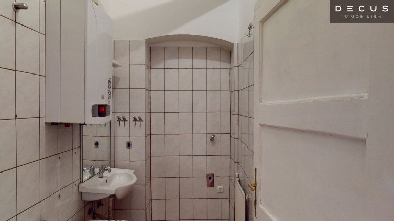 Die Immobilie befindet sich in einem gepflegten Gründerzeithaus und bietet aufgrund ihres aktuellen Zustands vielfältige Gestaltungsmöglichkeiten. Die Ausstattung ist funktional, jedoch teilweise sanierungsbedürftig, wodurch sich individuelle Wohnkonzepte ideal umsetzen lassen.