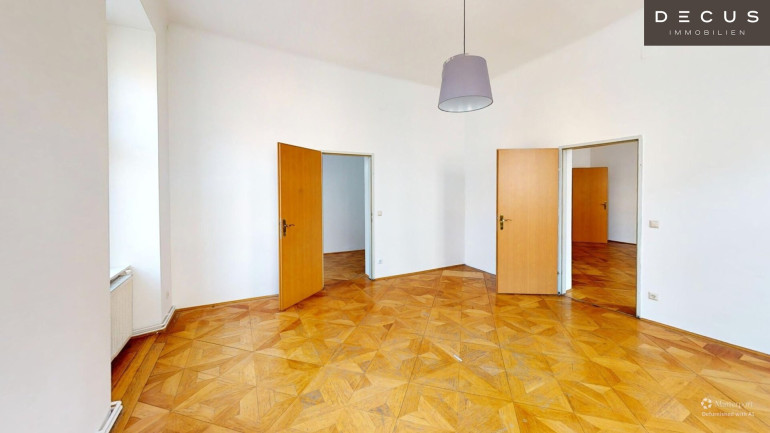 Diese großzügige Altbauwohnung in der Mariahilfer Straße im 15. Wiener Gemeindebezirk vereint klassischen Wiener Altbaucharme mit außergewöhnlichem Entwicklungspotenzial. Die im 1. Stock gelegene Wohnung verfügt über eine Wohnfläche von rund 153 m² und beeindruckt durch ihre großzügigen Raumhöhen sowie den typischen Altbau-Charakter mit Fischgrätparkett und großen Fensterflächen.