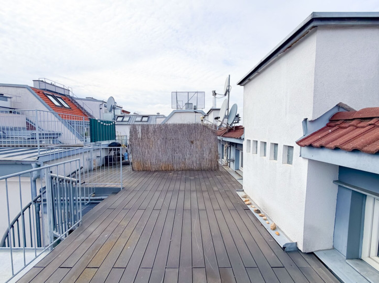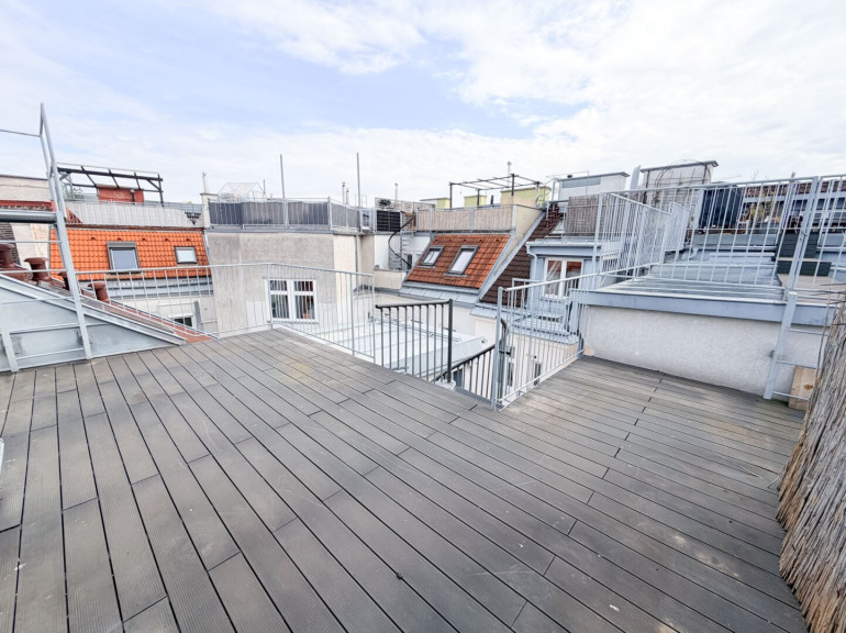Zu Vermieten steht eine 68,20 m2 große 2 Zimmer Dachgeschosswohnung (ohne LIFT) mit einer 5,08 m2 Terrasse im unteren Bereich und 15,51 m2 großer Dachterrasse. Die Mietwohnung befindet sich im Dachgeschoss eines ausgebauten Altbauwohnhauses in der Khunngasse 11 im 4. Stockwerk ohne Lift.