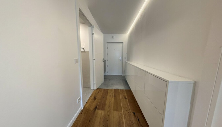Das stilvolle Badezimmer mit Walk-In-Dusche und hochwertigem Steinwaschbecken, ein Schlafzimmer mit integrierter Garderobenlösung sowie ein Wohnzimmer mit maßgefertigten Tischlermöbeln und Zugang zum Balkon bieten Wohnqualität auf hohem Niveau. Weiters sorgt ein Parkplatz vor der Türe zusätzlich und ein großzügiges Kellerabteil für Komfort im täglichen Leben.
