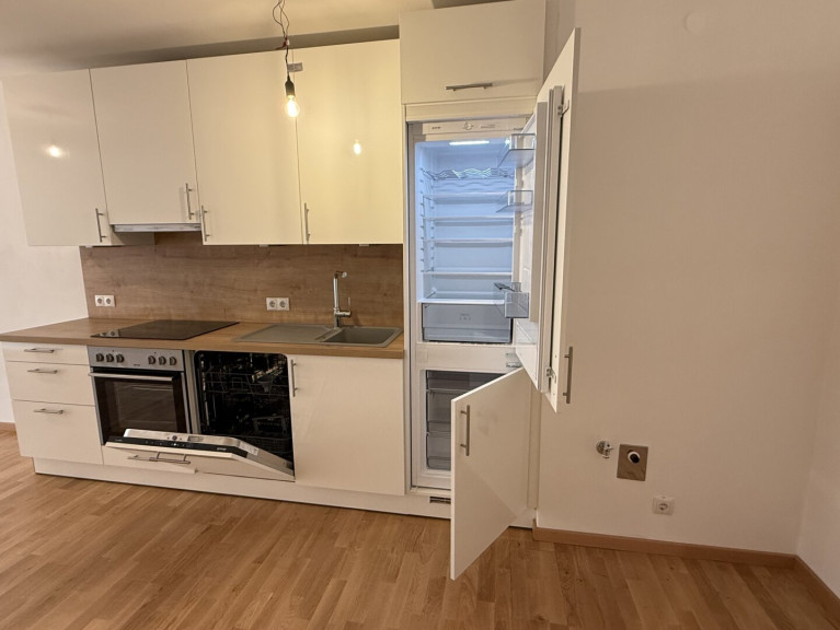 - Einbauküche: Elektroherd, Dunstabzug, Abwasch, Kühlschrank, Geschirrspüler + WM-Anschluss