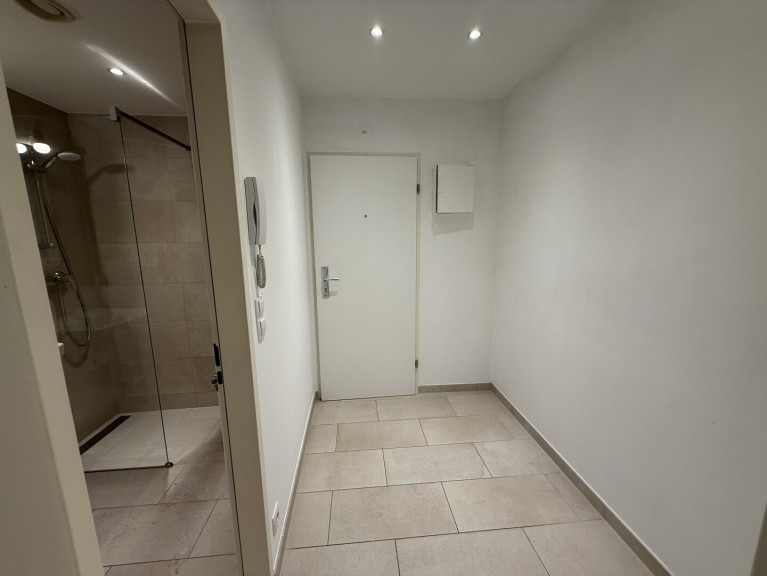 Es handelt sich um eine moderne Wohnung mit einem kompakten Grundriss.